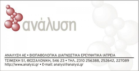 Στην ΑΝΑΛΥΣΗ ΙΑΤΡΙΚΗ ΑΕ επικεντρωνόμαστε στην έγκυρη, στην ασφαλή διάγνωσηκαι στην ολοκληρωμένη υποστήριξη στον τομέα της πρόληψης.