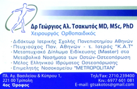 Δρ. ΤΣΑΚΩΤΟΣ ΓΕΩΡΓΙΟΣ MD, MSc, PhD