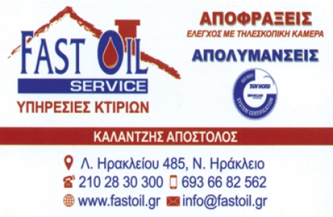 Η Fastoil Service,με έδρα το Νέο Ηράκλειο, δραστηριοποιείται επί σειρά ετών στηνπαροχή υπηρεσιών υψηλής ποιότητας στο χώρο των κτιρίων(πολυκατοικιών, μονοκατοικιών, επαγγελματικών χώρων, δημόσιων κτιρίων).