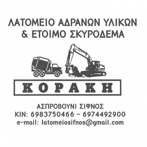 ΛΑΤΟΜΕΙΟ ΑΔΡΑΝΩΝ ΥΛΙΚΩΝ ΚΑΙ ΕΤΟΙΜΟΥ ΣΚΥΡΟΔΕΜΑΤΟΣ ΚΟΡΑΚΗ