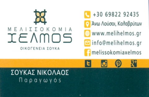 Η οικογένεια Σούκα για περισσότερο από μισό αιώνα παράγει μέλι. Πρώτος ο παππούς Νικόλαος, άνθρωπος της φύσης, αγάπησε τις μέλισσες και ξεκίνησε τα πρώτα του μελίσσια στο βουνό της καρδιάς του, το Χελμό. Την ίδια αγάπη μετέδωσε και στο γιο του Γιώργο, ιδρυτή της «ΜΕΛΙΣΣΟΚΟΜΙΑΣ ΧΕΛΜΟΣ« στους Άνω Λούσους Καλαβρύτων. Σήμερα τα τέσσερα παιδιά του ενωμένα με τους άρρηκτους δεσμούς μιας κυψέλης, με αγάπη και τεχνογνωσία, συνεχίζουν την παράδοση και παράγουν βιολογικό μέλι, γύρη, βασιλικό πολτό και κεραλοιφή.