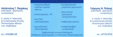 ΠΑΤΡΙΚΙΟΣ ΑΠΟΣΤΟΛΟΣ - ΠΛΑΚΑΣ ΓΕΩΡΓΙΟΣ. - ΙΑΤΡΙΚΗ Ο.Ε.