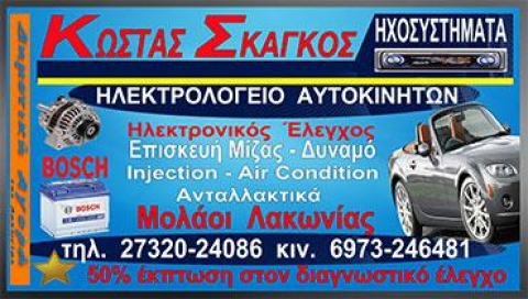 Το ηλεκτρολογείο αυτοκινήτων μας λειτουργεί στους Μολάους Λακωνίας, προσφέροντας υπηρεσίες υψηλού επιπέδου στην επισκευή και συντήρηση των ηλεκτρικών και ηλεκτρονικών συστημάτων του αυτοκινήτου σας ή της μοτοσυκλέτας σας.