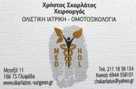 Γενική χειρουργική, λαπαροσκοπική χειρουργική, παθήσεις κοιλίας, θυροειδούς, μαστού, πρωκτού, κηλώνΤέως Διευθυντής Χειρυργικής Κλινικής νοσοκομείου, ολιστική ιατρική, οζωνοθεραπεία, εναλλακτική ιατρικήΚαθημερινά με ραντεβού