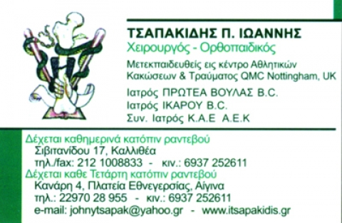 Ωράριο ιατρείου Καλλιθέας:Δευτέρα, Πέμπτη & Παρασκευή 15:00 - 20:00
