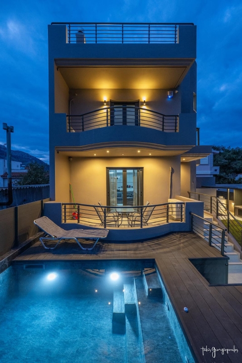 Ενοικιαζόμενη βίλα - Πλήρως εξοπλισμένη Ανοιχτά όλο το χρόνο, ιδιωτικός χώρος, parking,Χωρητικότητα εώς 9 άτομα, barbeque, mini pool, tv, τζάκι,24ώρες ζεστό νερό.